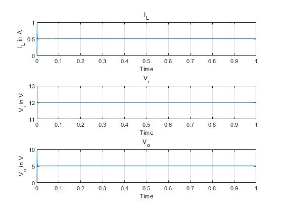 The Closed Loop Buck Converter, be used PI Controller. Simple explanation is, we can set the reference voltage with constant block. And then, we can compare reference voltage to output voltage on the load. As you can see, the reference voltage is set 6 V and output voltage is also 6 V